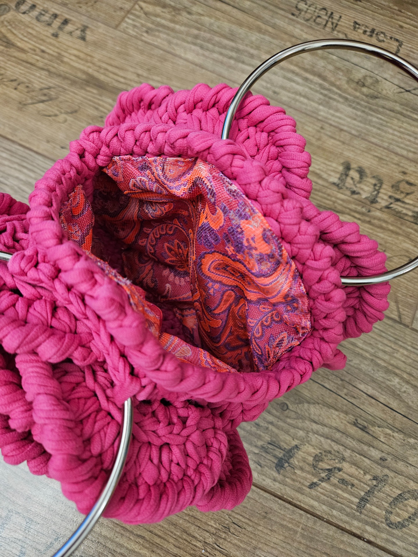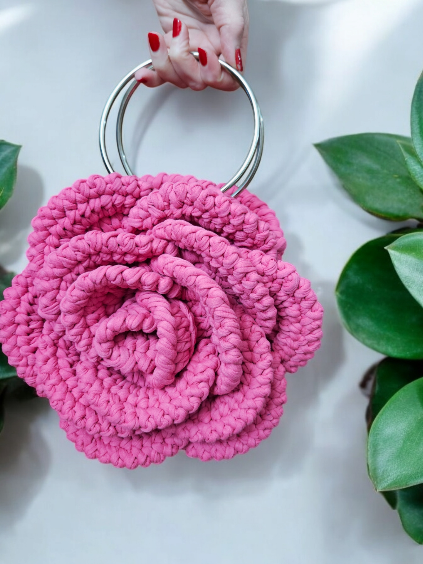 Extravagantní kabelka, růže, příze Bobilon,100% bavlna, barva sytě růžová, podšívka polyester, kovová ucha