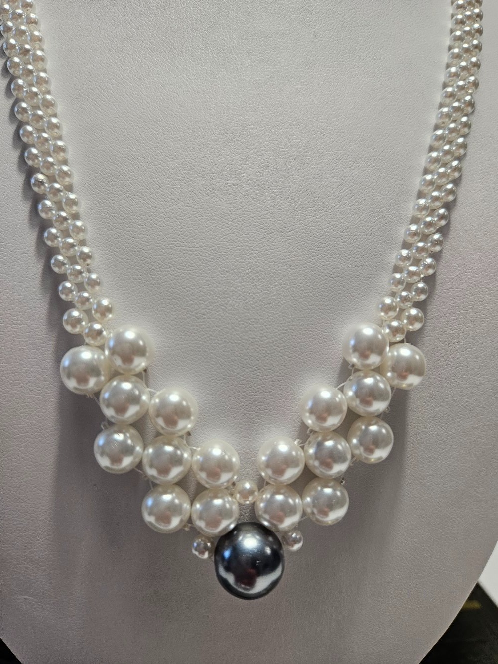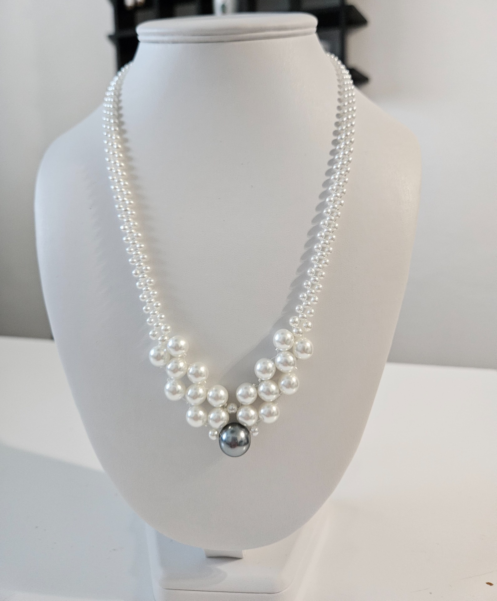 Elegantní náhrdelník v barvě bílé, ručně šitý, originální šperk, voskované perly, magnetické zapínání
