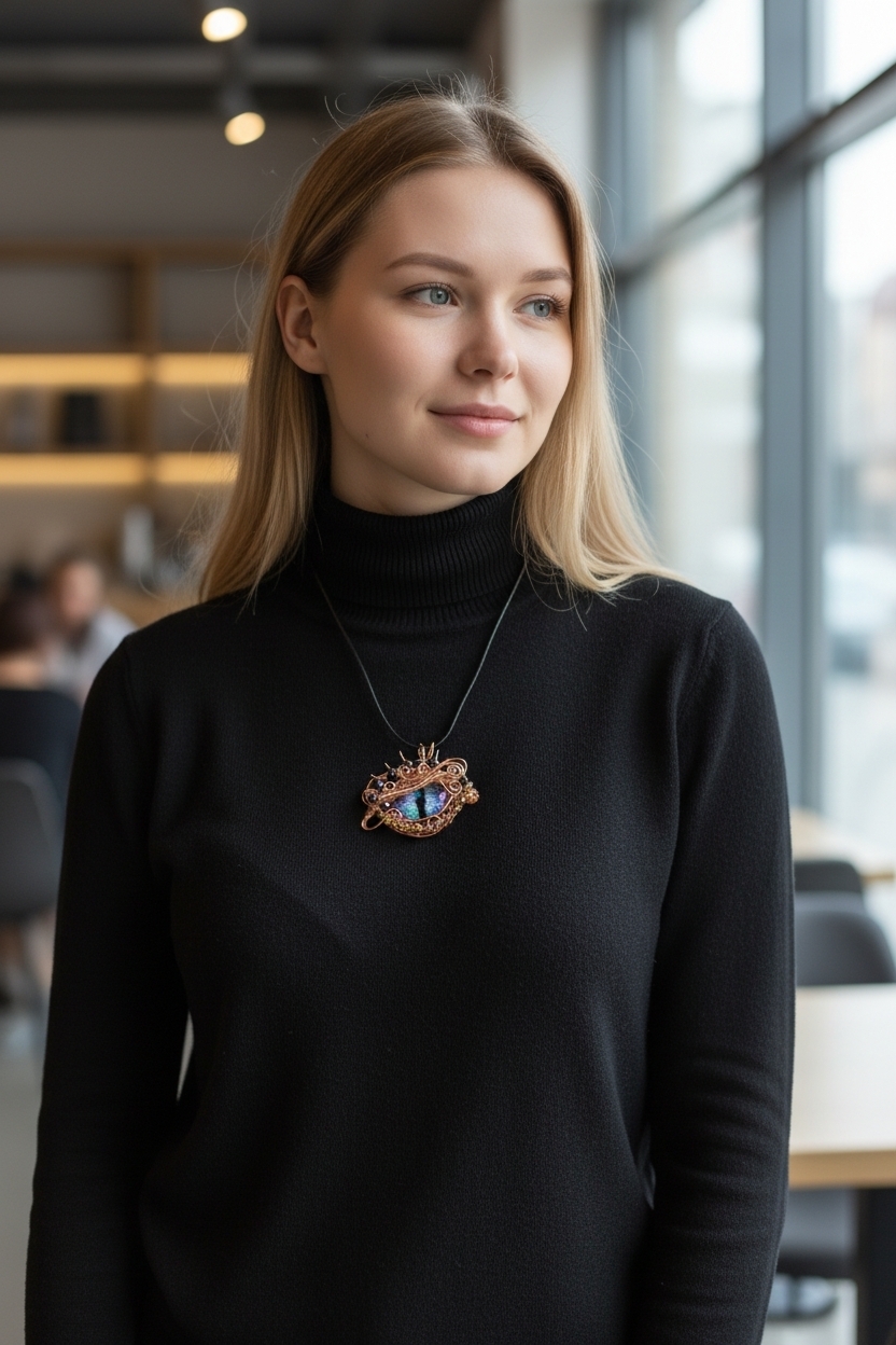 Náhrdelník (je možno vyrobit i jako brož) vyrobím i na zakázku, ať již z hotových skleněných očí nebo na přání i barevná paleta.
