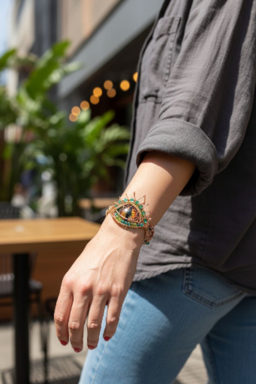 Náramek vyrobím i na zakázku, ať již z hotových skleněných očí nebo na přání i barevná paleta.